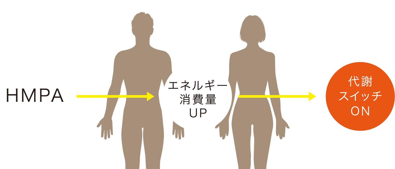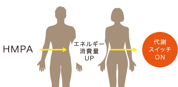 なぜ、腹部の脂肪・ウエスト周囲径、血糖値、コレステロールが改善されるのですか?HMPAは腸で吸収されたのち、HMPAを認識するGPR41を活性化することでノルアドレナリンの分泌を促進させます。ノルアドレナリンはエネルギー消費量を増加させる働きがあるので、脂肪を減らす機能があります。また、代謝スイッチであるAMPキナーゼを活性化させることによって、脂肪を減らす機能のほか、コレステロール量の減少や、血糖値を元に戻しやすくすると考えられています。