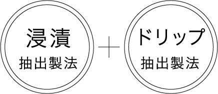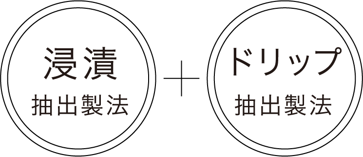 雑味が無く、キレのあるビターな味わいが出せる「ドリップ抽出製法」と、豆がぶつかりあい、複雑味のある味わいが出せる「浸漬抽出製法」。2種類の方法で抽出したコーヒーを組み合わせることで、味わいを調整しています。