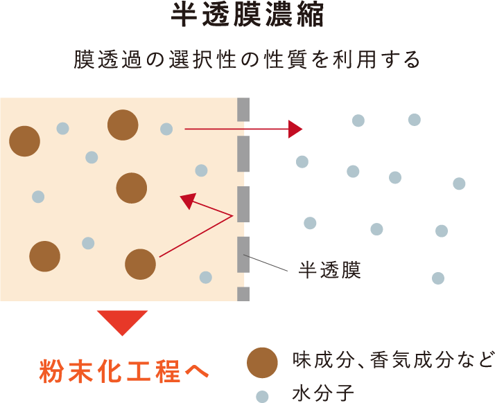 一般的な濃縮方法は一定温度の過熱が必要なのに対し、『スマートブラック』では「半透膜濃縮」という特別な濃縮方法を採用。半透膜の性質を活用することにより、比較的低温でコーヒー成分を濃縮することができるので、熱による風味の劣化を抑えられました。