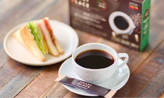『スマートブラック』の摂取目安量は1日たった1本。100~120mLのお湯または水に溶かして、朝でも昼でも夜でも好きな時間に飲むだけ。毎食時に飲む必要がなく、いつものコーヒーを1杯置き換えるだけなので手軽に美味しく続けることができます。